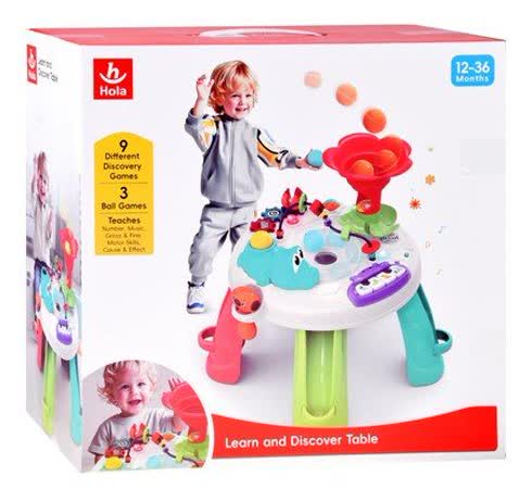 میز بازی هولی تویز (Hola Toys Learn and Discover Table E8999) یک اسباببازی آموزشی و سرگرمی برای کودکان نوپا است که برای رشد مهارتهای شناختی، حرکتی و حسی طراحی شده است. این میز شامل ۳ بازی توپ تعاملی، تجربه هیجان با صدا و نور، و ۹ فعالیت کشف مفاهیم است که شامل اشکال، اعداد و رنگها میشود. دستگاه دارای قطعات متحرک، ملودی و افکت صوتی است که با تعامل کودک فعال میشوند. این میز بدون زبان و با ملودی و صداهای جهانی طراحی شده است تا برای کودکان با هر زبانی قابل استفاده باشد. مناسب برای کودکان بالای ۱۲ ماه است و یک ابزار عالی برای ترکیب یادگیری و بازی است.