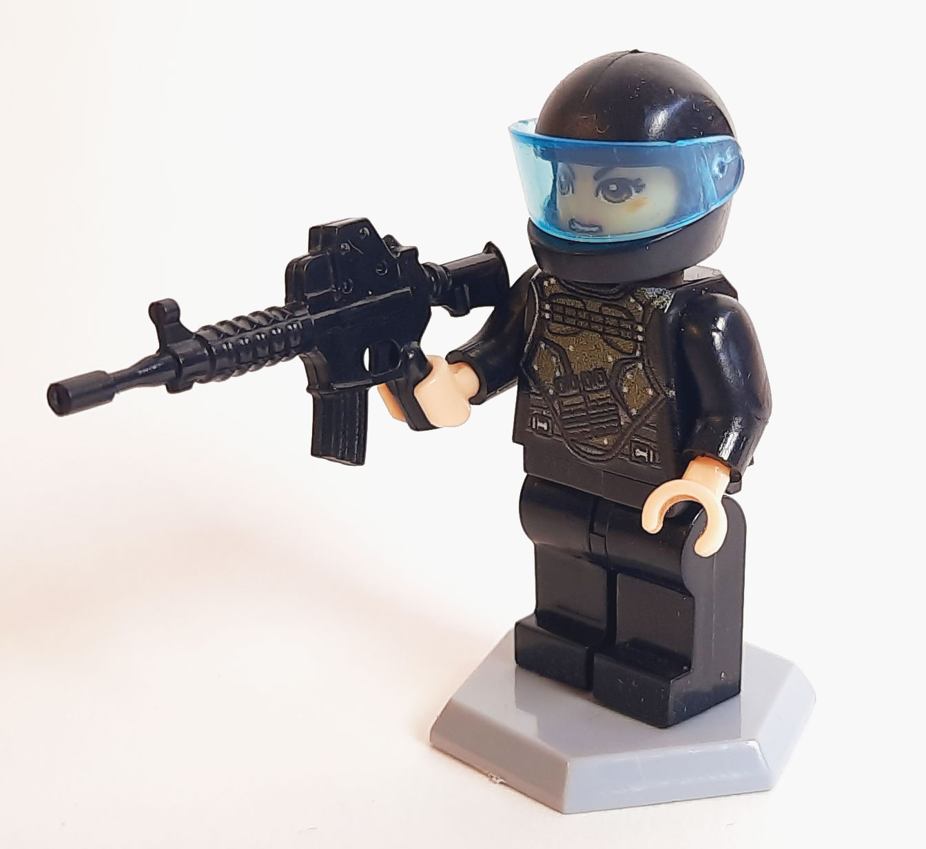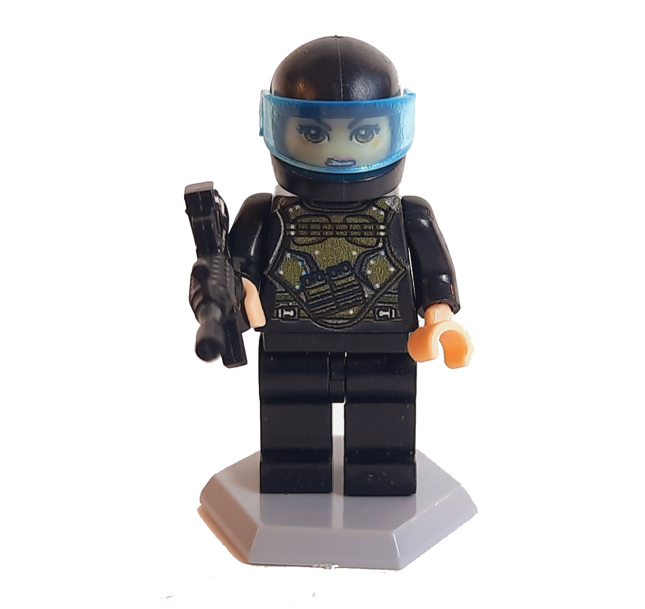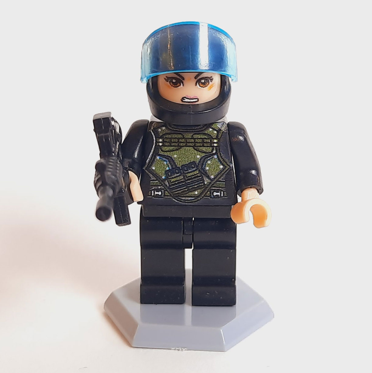 این مینی فیگور لگویی سرباز زن با ترکیب رنگی مشکیسبز طراحی شده تا ظاهر یک نیروی نظامی حرفهای را تداعی کند. کلاه کاسکت، چاپ دقیق روی لباس و جزئیات چهره، ظاهری واقعی و تاکتیکی به این فیگور میدهد. همراه محصول یک تفنگ نیز قرار دارد که نوع آن در بستهبندیهای مختلف بهصورت رندوم انتخاب میشود و میتواند تجربه خرید را متنوعتر کند. این فیگور انتخابی مناسب برای ساخت صحنههای جنگی، پروژههای دیوراما، مجموعههای کلکسیونی و بازیهای تخیلی کودکان است و بهراحتی میتواند در کنار سایر نیروهای نظامی قرار گیرد.