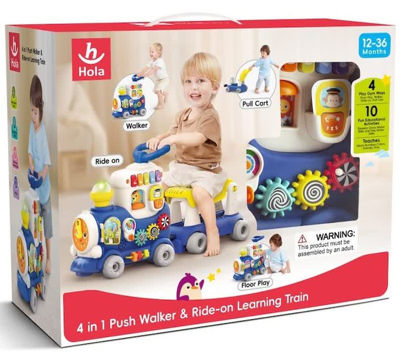 Hola Toys 4 in 1 Push Walker And Ride-on Learning Train HE8990B