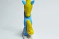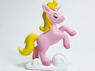 این اسب تکشاخ با بدنه آبی و یال و دم زرد روشن، ترکیب رنگی جذاب و فانتزی دارد. طراحی آن به شکلی است که در حال ایستادن روی یک ابر سفید قرار گرفته و به فضا حالتی جادویی و خیالانگیز میبخشد.