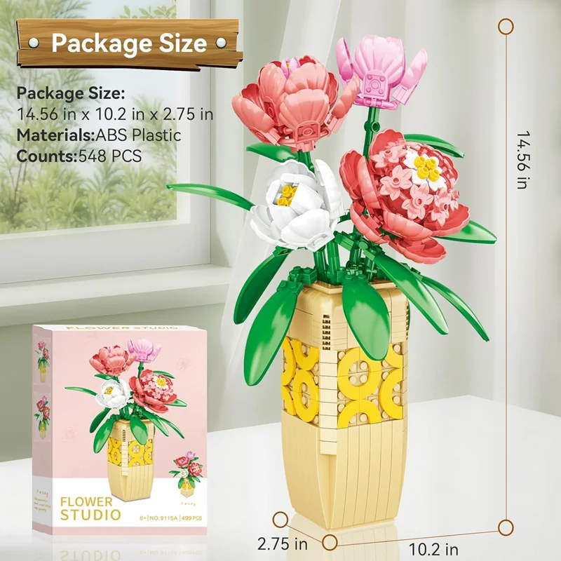 این محصول نه‌تنها سرگرم‌کننده است بلکه جلوه‌ای شیک به محیط می‌دهد. می‌توانید دسته گل ساخته‌شده را در یک گلدان قرار دهید و در خانه، دفتر کار یا ویترین‌های تزئینی به نمایش بگذارید. این ست همانند گل‌های واقعی، زیبایی چشم‌نوازی دارد اما با ماندگاری همیشگی و بدون نیاز به نگهداری.