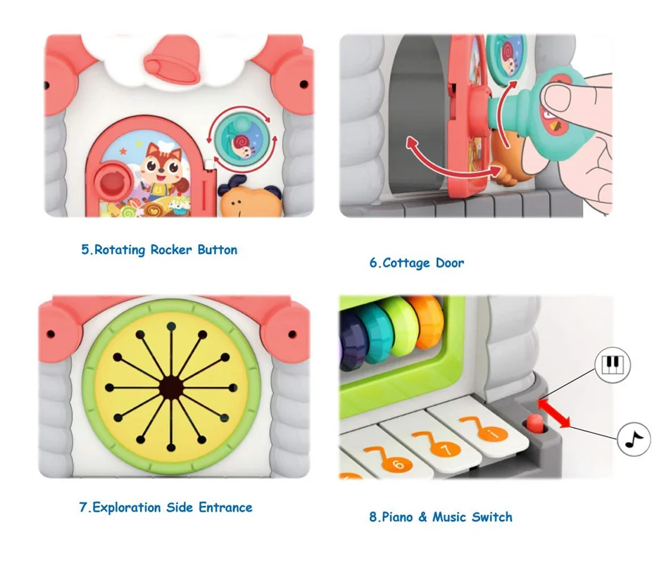 با نواختن کلیدهای پیانو می توان به تقویت حس ریتم کودک نوپا کمک کرد. رنگ های اطراف خانه، کودک شما را به داخل می کشاند و او را تشویق می کند که بخزد و در اطراف حرکت کند! یک اسباب بازی سرگرم کننده همه جانبه برای کوچولوی دوست داشتنی شما!