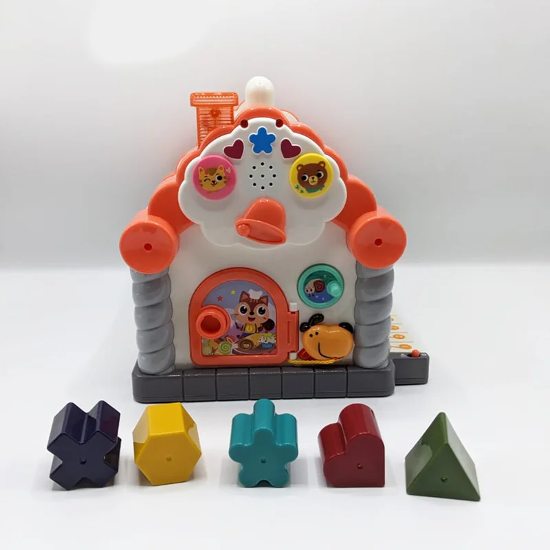 کلبه جای گذاری موزیکال و فکری آموزشی یک اسباب بازی نشکن می باشد. این کلبه زیبا با قابلیت جای گذاری اشکال هندسی و حیوانات مناسب برای کودکان 18 ماه به بالا می باشد.