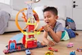 بچهها ماشین آتشنشانی Hot Wheels را روی بالابر دستی میرانند، سپس آن را به یکی از سه سطح بالا میبرند قبل از اینکه آن را از میان حلقه بفرستند و از سرسره آبشار نیمه شفاف خارج کنند.