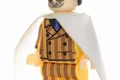 مینی فیگور لگو بورسالینو، یک فیگور مردانه خاص و متفاوت است که با طراحی دقیق و جزئیات فراوان خود، هر مجموعه لگو را ارزشمند میکند. این فیگور به طور کامل با لباس راه راه قهوهای طلایی، شلوار و کت رسمی و یک شنل سفید ساده ولی چشمگیر روی شانههایش دارد که جلوه ویژهای به ظاهرش بخشیده است. موهای مشکی مجعد و عینک زرد رنگ، چهره فیگور را منحصر به فرد و به یادماندنی کرده است. جزئیات چهره مانند خطوط ریز و چروکها به خوبی طراحی شدهاند که به آن حس واقعگرایی میبخشد.
