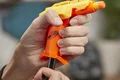 اسلحه تیر ابری نرف آلفا استریک « استینگر SD-1» مهارت های خود را با مجموعه هدف گیری 11 تکه Stinger SD-1 که شامل یک بلستر، 8 دارت و 2 هدف نیمه است که می توان آنها را برای ایجاد 1 هدف کامل متصل کرد، تمرین کنید. این بلستر جمع و جور برای نبردهای مخفی کاری و بازی های با حرکت سریع عالی است. 1 دارت را در خشاب قرار دهید، دسته را به حالت اولیه بکشید و ماشه را فشار دهید تا شلیک شود. این دارای 8 دارت رسمی Nerf Elite است. دارت های رسمی Nerf از نظر عملکرد و کیفیت آزمایش و تایید شده اند و از فوم با نوک های منعطف و توخالی ساخته شده اند. بدون نیاز به باتری Nerf و تمام خواص مرتبط علائم تجاری Hasbro هستند.