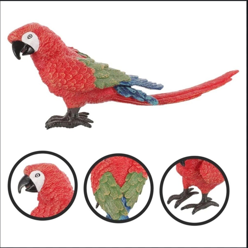 این فیگور با دقت بالا به جزئیات بدن طوطی قرمز طراحی شده است. ترکیب رنگهای طبیعی شامل قرمز پررنگ در بدنه، آبی درخشان در انتهای پرهای بال و سبز جذاب در بخش میانی، شباهت زیادی به طوطیهای واقعی دارد. جزئیات پرها، منقار مشکی رنگ و چشمهای سیاه، کاملکننده زیبایی این ماکت هستند.