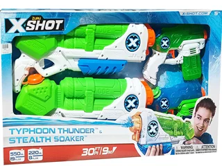 تفنگ زورو ایکس شات «تفنگ آبپاش ایکس شات بسته 2 تایی تفنگ بزرگ توفان تندر» برای حملات شدید جنگ آبی توصیه شده است. ست 2 عددی تفنگ آبپاش X-Shot شامل- 2 عدد تفنگ بزرگ دارای مخزن 550 میلی لیتری است و جت آب 9 متری پرتاب می کند با قرار دادن تفنگ در آب و نگه داشتن آن برای چند ثانیه مخزن پر می شود-اسباب بازی از 5 سالگی توصیه می شود، تخیل، هماهنگی، هدف گذاری و اجتماعی شدن را تقویت می کند.
